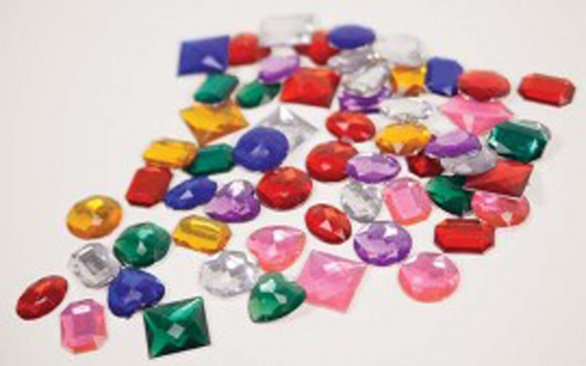 Add some sparkling color to your craft projects with these jumbo size jewels. Featuring an array of rainbow hues and unique shapes, these acrylic jewels will give any craft a snazzy new look. Self-adhesive, 1 in. each. 100 pieces.