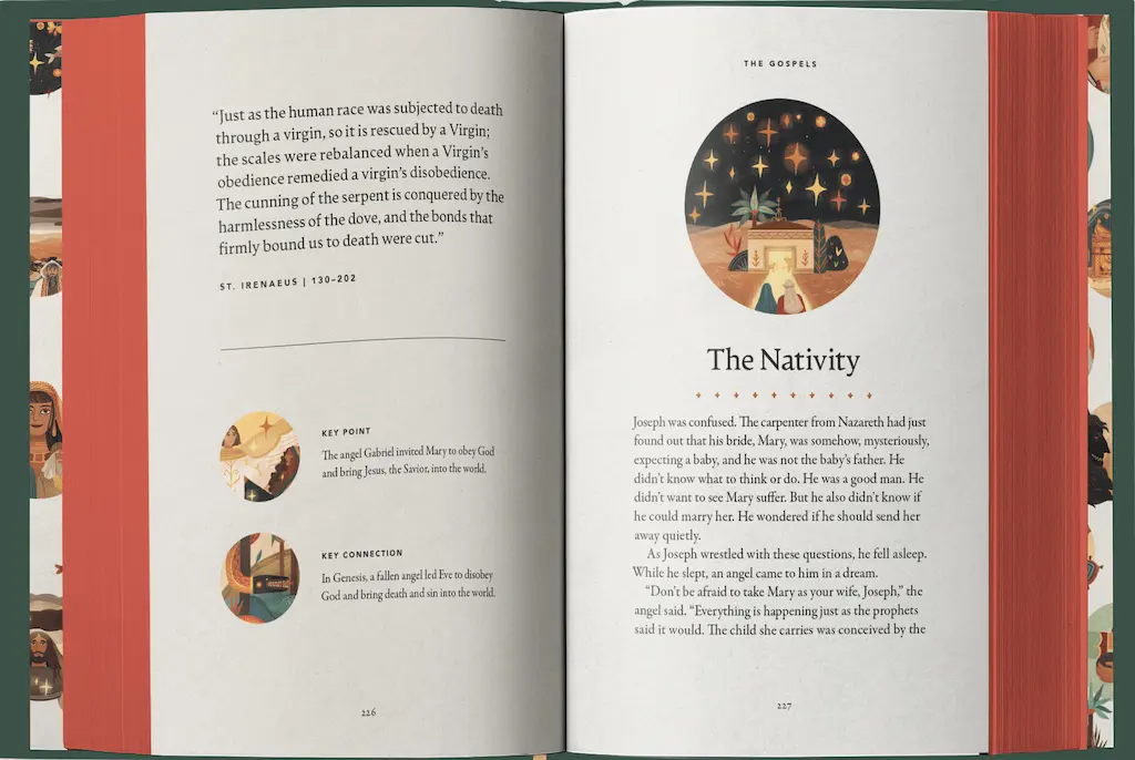 Ages 7-13. Enter into the most important tale of all: the true story of God’s love for you. Experience the wonder and excitement of salvation history through Emily Stimpson Chapman’s compelling storytelling and Diana Renzina’s beautiful illustrations. The first distinctly Catholic story Bible that tells the entire story of salvation history through beautiful illustrations, quotes from the voices of the Church, and typological references that show how the Old and New Testaments are connected.​